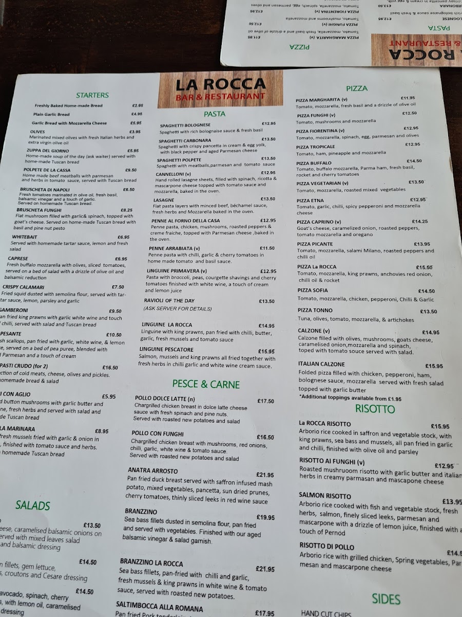 Welcome to La Rocca Italian Restaurant, a hidden gem nestled in the stunning surroundings of Cheddar Gorge. Our menu showcases authentic Italian flavors, expertly crafted to offer a memorable dining experience. Indulge in our vibrant salads, such as Calata Tricolore (£15.95) and the delightful Esare Con Pollo (£16.50), which set the stage for your meal.